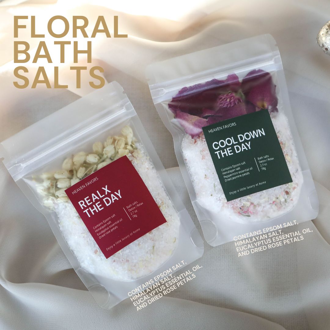 Contains Epsom salt, Himalayan salt, Peppermint essential oil, and dried Jasmine flowers