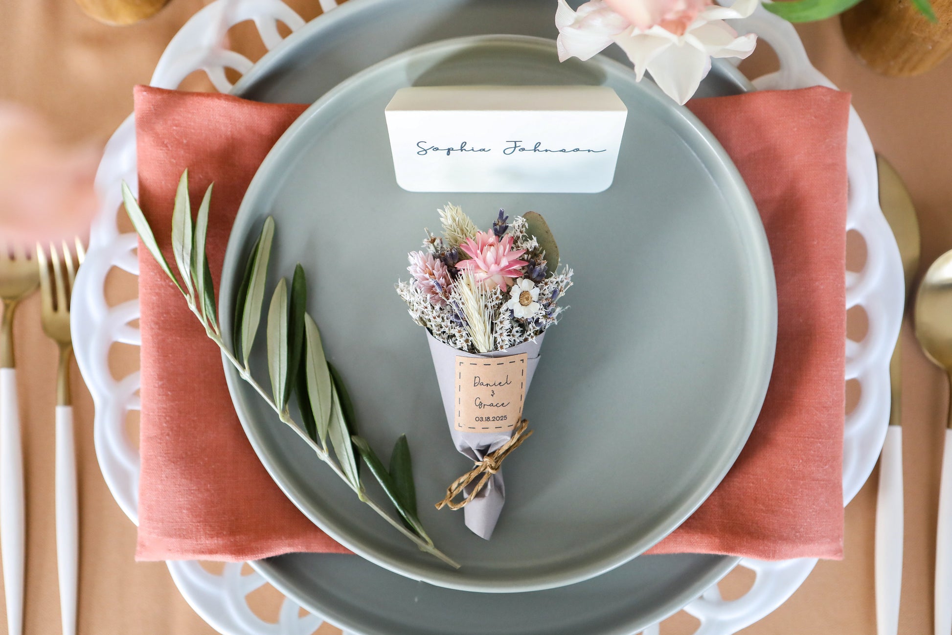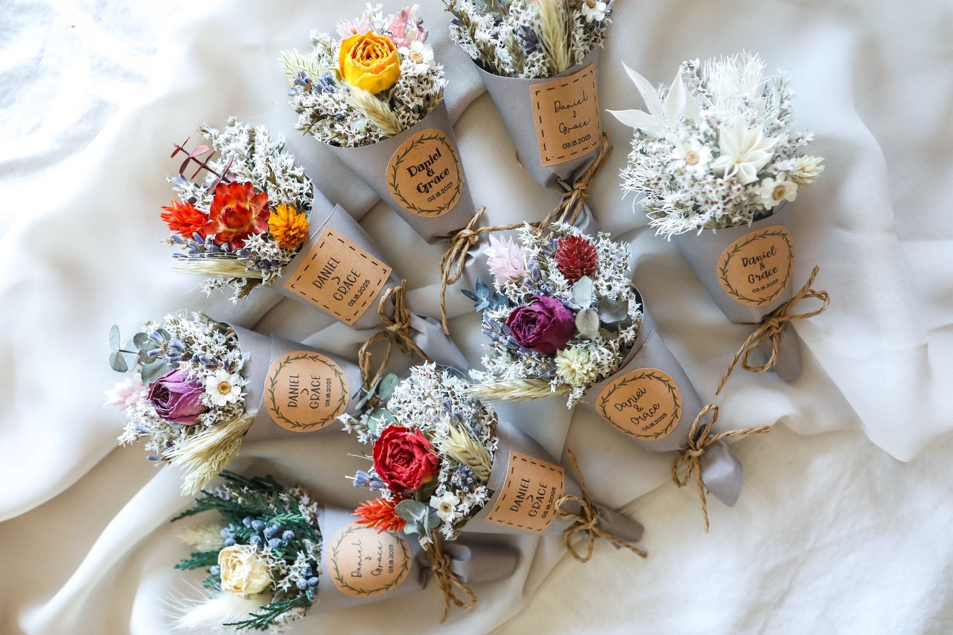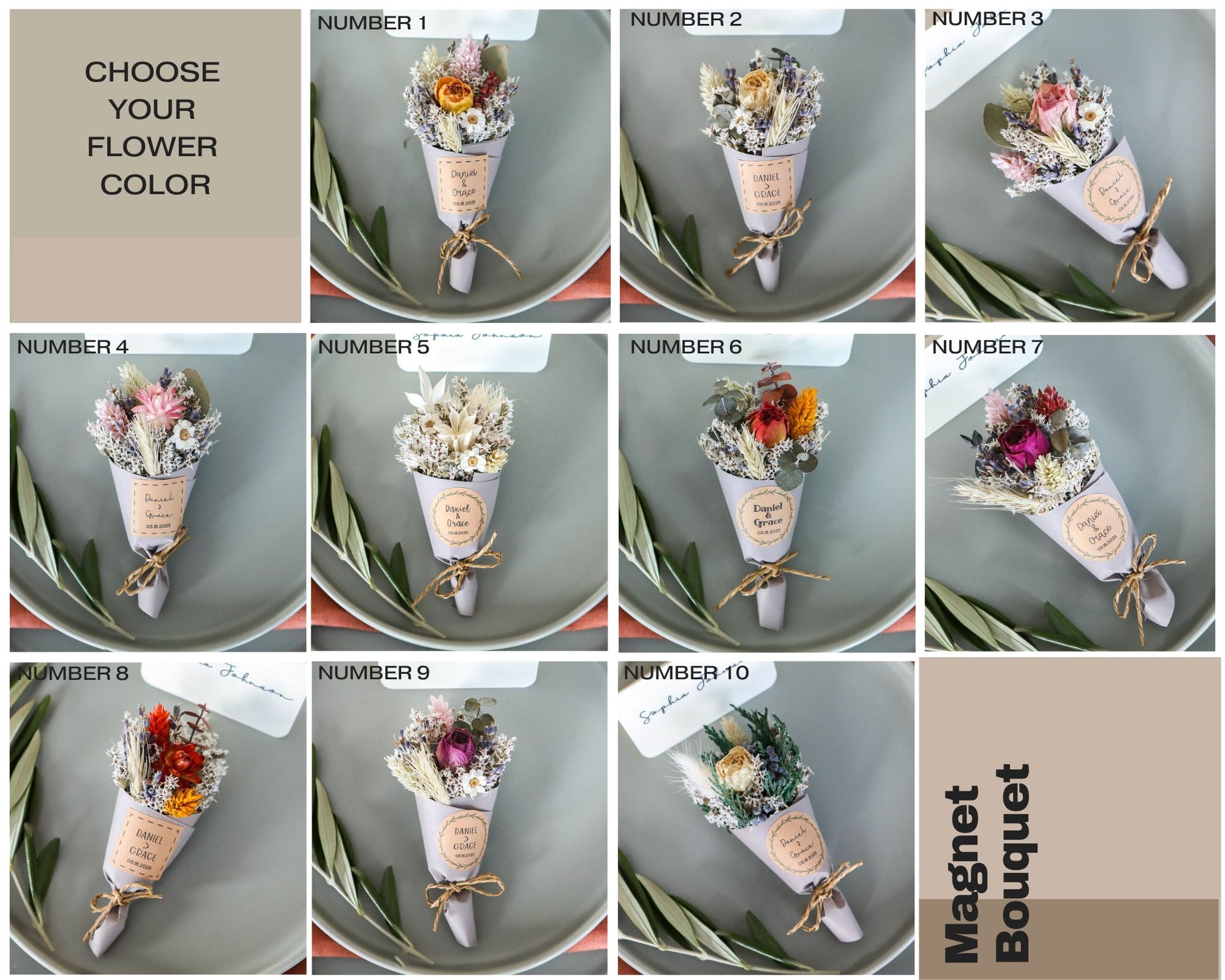 💐 Mini magnet dried bouquets (magnet on the back of the bouquet) are perfect for wedding favors, home décor, gifts for many occasions, and even for plate charger décor for weddings.