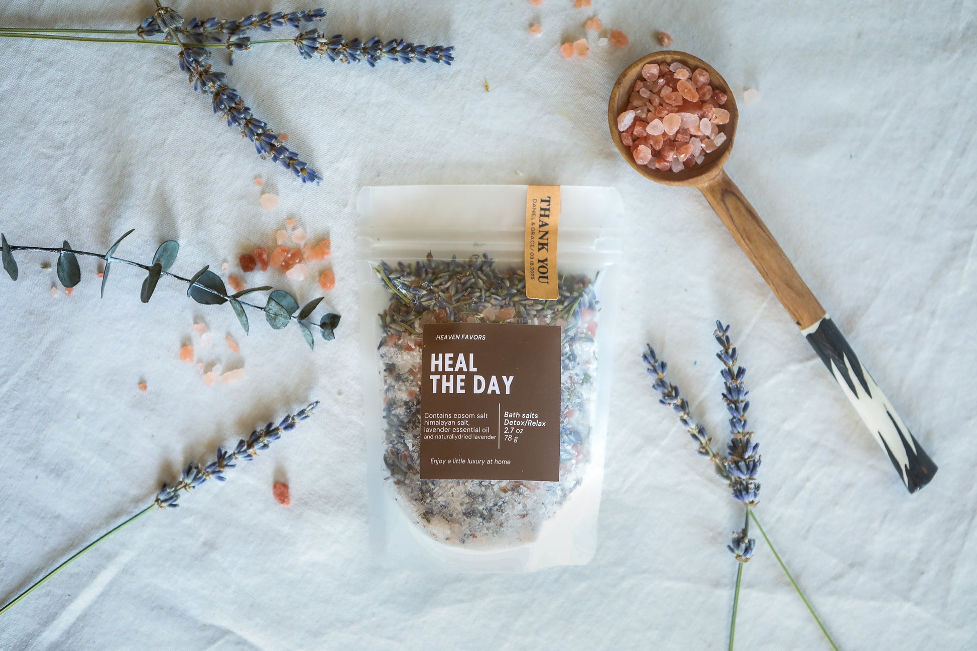 Contains Epsom salt, Himalayan salt, Lavender essential oil, and naturally dried lavender